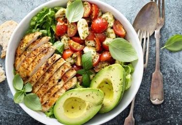 Almuerzo : Ensalada de pollo con aguacate y chile.